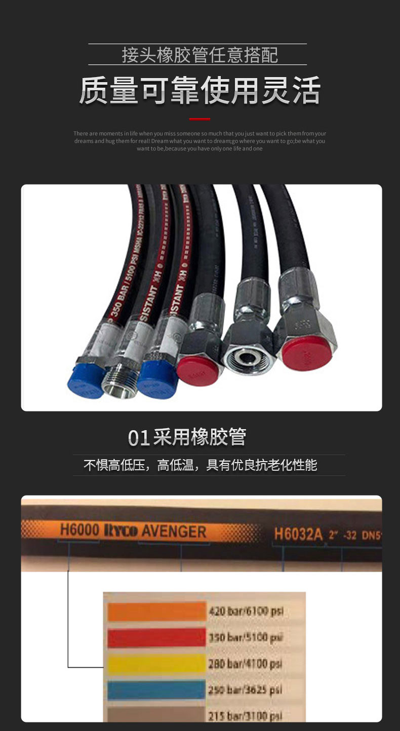 工程機(jī)械液壓軟管膠管鋼絲編織高壓油管總成輸水橡膠軟管液壓油管